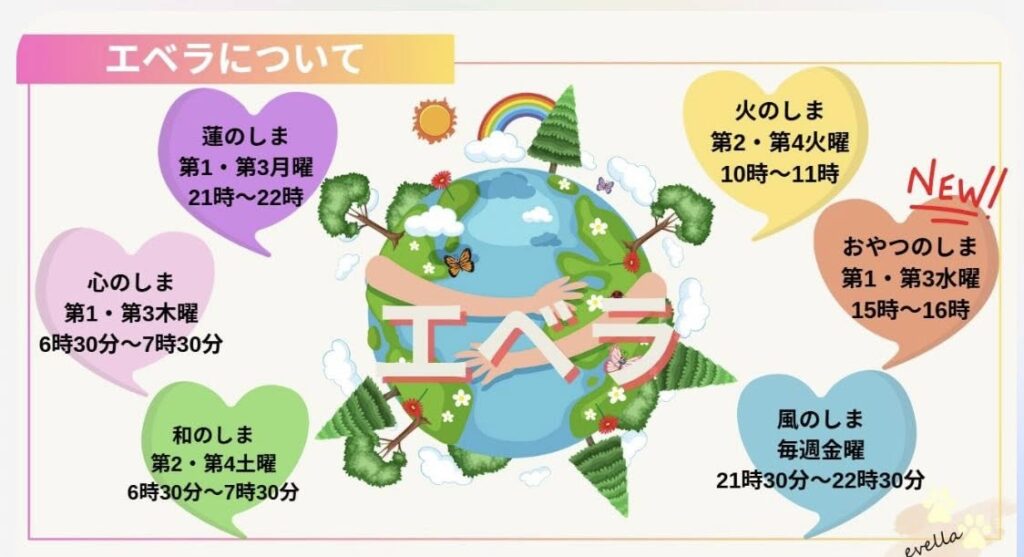 かなさんが「1つ1つを日本列島に浮かぶ島ってイメージします♡そこかしこに、あったかい温泉のような島が増えていく感じ♡」と言ってくれたので、エベラは「支部」ではなく「島」になったんです。
